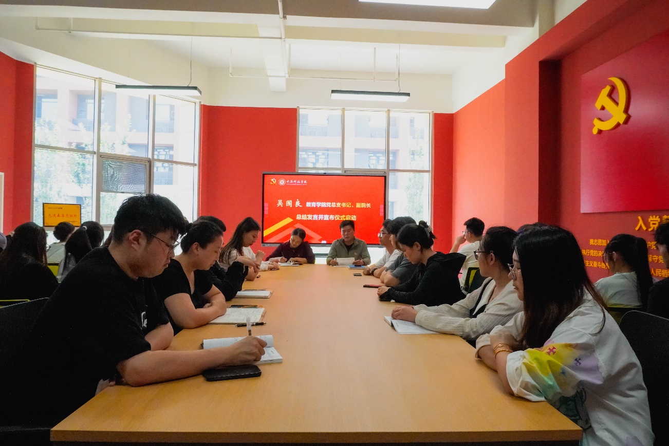 擎思想之旗夯根基,生涯领航教学相融。教育学院党总支书记、副院长吴国良进行总结发言并宣布仪式启动。他对本次活动提出了两点要求:一是强化思想引领,筑牢政治根基,要求党支部持续深化理论学习,以党的创新理论武装头脑,推动党建与教育教学深度融合;二是聚焦服务育人,发挥党员先锋作用,在课程建设、学生培养中主动担当,打造具有教育学院特色的党建品牌。讲话最后,他强调要把握活动机遇,将要求化为行动,以实干奋进之姿,共绘学院高质量发展的崭新画卷。