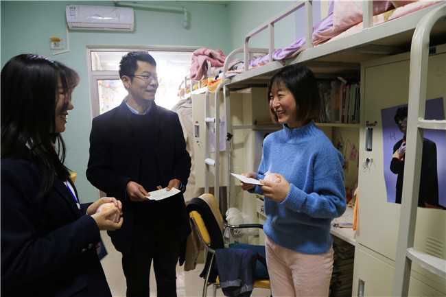 为持续推动“不忘初心、牢记使命”主题教育走向深入,引导学生党员不断强化“为中国人民谋幸福、为中华民族谋复兴”这一共产党人的初心和使命,增强“全心全意为人民服务”的意识和能力,12月13日,在2019年度考研的最后的冲刺阶段,教育学院党总支组织党员志愿服务队开展“冬日送温暖 情系考研生”——为考研学子送祝福活动。来自全院的学生党员和入党积极分子在各学生支部书记的带领下,参加了本次送温暖志愿服务活动。