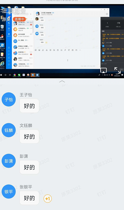 按照计划,卜老师组织大家先组织各个支部书记组织学生党员进入钉钉群,进而集中观看《雄关》纪录片,之后卜老师就自己的一些切身体会与再会人员进行分享。最后听取学生的感悟发言。