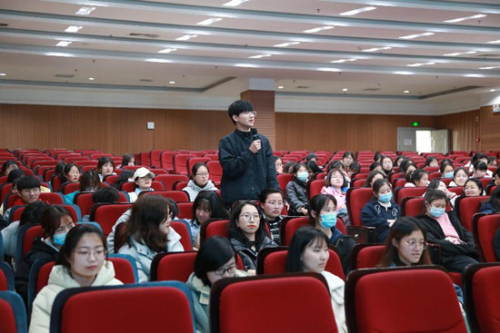 宋校长还向2020级小学教育专业的同学们提出建议,提醒大家要好好珍惜大学时光,努力学习专业知识,注重实践活动积累实战经验,与新时代结合,响应时代要求,争做“四有”教师。学生们与宋校长积极互动,现场氛围热烈。在会议最后,赵双兰主任对此次活动做了精彩总结,此次讲座是小学教育专业新生职业引领系列主题讲座的最后专场,旨在激发学生对小学专业的认同感,真正喜欢上教师这一职业。