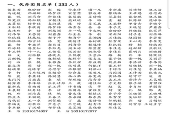 为迎接“五四”青年节,不断深化创先争优活动,树立青年先进典型,集中体现我校青年学子的精神风貌、价值追求,以优异的成绩向共青团献礼,我院团委应校团委要求,在全院范围内共选报232名优秀共青团员,34名优秀共青团干部,两名十佳共青团员,一名十佳共青团干部,名单通报如下: