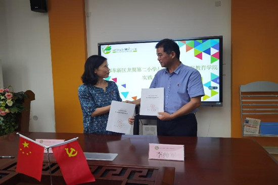 盛夏七月,万物蓬发。为进一步推进院校教育合作,共同提升人才培养水平,实现合作共赢,共谋发展。2021年7月5日下午,中原科技学院教育学院与郑东新区龙翼第二小学举行了教育实践基地签约仪式。中原科技学院教育学院院长李帅军、副院长李向玲、院办副主任孙伟、小学教育专业教研室主任赵双兰、心理学专业教研室主任刘晓萌及艺术教研室专任教师金东豪,龙翼第二小学校长张慧、副校长刘月梅等人员参与此次签约仪式。