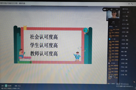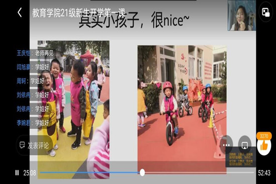 第二周主要为新生进行专业引领,通过老师、优秀毕业生现身传授经验,增强新生的专业认同感,明确专业发展方向,提前规划大学职业生涯规划发展。院长、院长助理、教研室主任、团总支书记、辅导员、优秀毕业生纷纷变身主播,为新生学生答疑解惑,指点迷津,受到了新生的热烈欢迎。教育学院副院长李向玲老师给21级新生全面介绍了教育学院的基本情况、专业设置等。在基本情况方面,主要对学院组织架构、专业设置、师资队伍、在校学生情况、毕业升学就业等进行解读。在办学成效方面,主要从专业建设、产教融合等进行讲解。院长助理张柯向21级萌新开展把灾难当教材与祖国共成长的爱国主义主题教育思政课。同时,四位教研室主任为学生分别讲解了学前教育专业、 小学教育专业、心理学专业等专业的基本情况,除此之外,三位优秀毕业生从学习经历,校园生活等方面分享了个人成长经历。通过学院专业引领,使学生对教育学院的办学概况,师资力量、专业设置、特色学科等形成一个初步了解,增强专业认同感。
