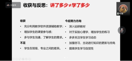 冯院长在教学质量分析会上强调,我们要正视存在的不足和问题,要不懈追求课程的达成度和学生的获得感,学院将不遗余力支持课程创新。同时,班级建设情况和学情分析信息要及时共享,辅导员与学业导师之间要加强协同合作,合理解决班级差异问题。各位老师通过此次分享交流,学习了他人之长,明晰了个人改进方向,促进常规教学规范的同时,也提升了教师个人教学水平。