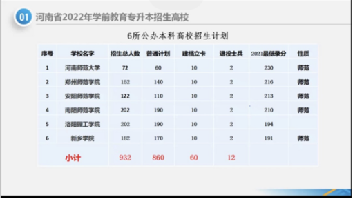 紧接着,张主任为同学们具体分析了专升本相关政策。首先分析了河南省2022年学前教育专升本招生高校中6所公办本科高校招生计划和13所民办本科高校招生计划情况,包括招生总人数、普通计划、建档立卡、退役士兵计划以及近三年的录取分数,内容详实,数据可靠。然后又详细讲解了本次专升本志愿填报注意事项及录取时间安排,并树立“冲一冲、稳一稳、保一保”的观念,结合自身实际情况,掌控好专升本的“方向盘”。最后又通过答疑环节,给同学们解疑“什么是征集志愿?被录考生能不能退档补录?录取后又不想上了,不去报到会怎么样?”等问题,鼓励大家精准填报志愿,2022年成功上岸。最后,吴老师祝福大家2022年升本成功,开启自己人生新的历程。毕业班辅导员宋鹏老师也提前祝愿同学们前程似锦,未来可期。