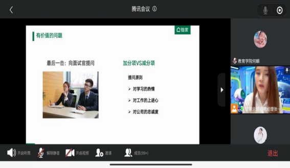 针对考研学生以及实习就业学生关心的“简历制作”和“面试技巧”问题,教育学院联合学校招生就业处于10月30日下午17点举办了“简历制作&面试有道”线上讲座,针对学生关心的如何制作特色鲜明简历、如何在面试中突出自身亮点等热点问题进行了详细的剖析和解答,并从“HR”的角度帮助毕业生制造属于自己的特色简历,缓解面试前的紧张情绪。