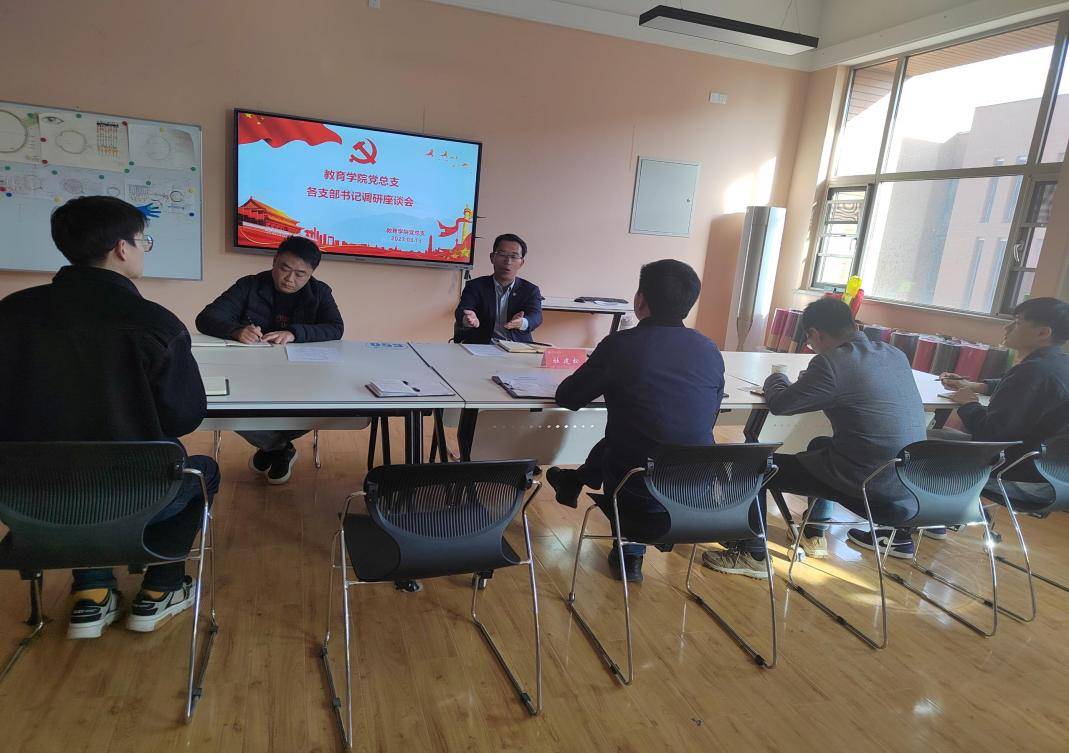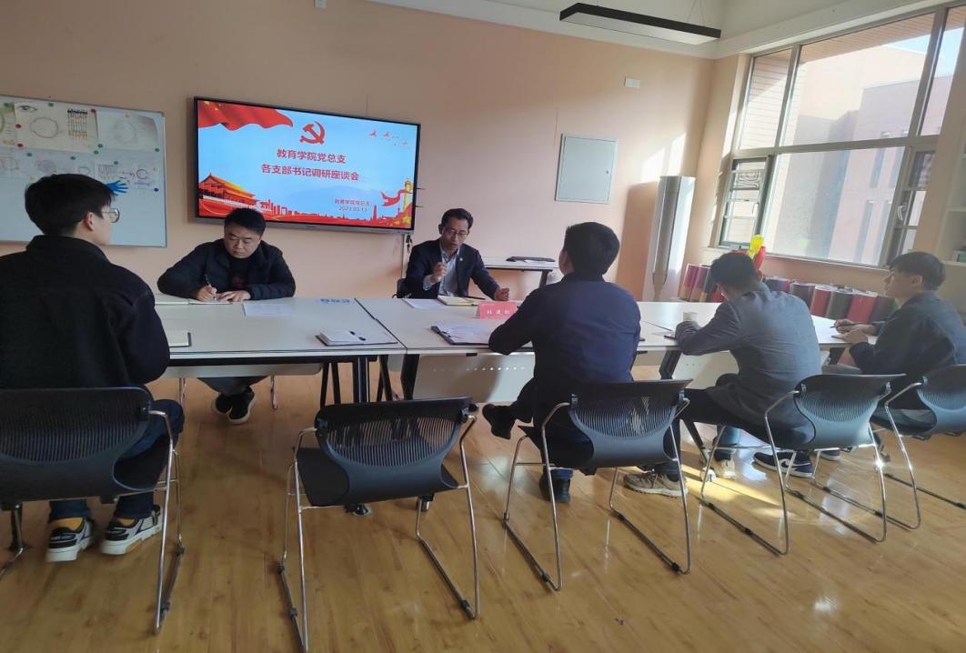 为全面深入了解教育学院各党支部工作开展情况,了解支部工作开展的亮点和支部书记工作开展中存在的困难和问题,更好地为支部工作的开展提供思路和帮助,帮助支部书记解决实际工作中的困难和问题,为支部书记出谋划策,以更好地发展支部工作,切实发挥好基层支部的战斗堡垒作用,3月13日下午17点,教育学院党总支召开各党支部书记工作调研座谈会,会议由党总支书记吴国良同志主持,校党委副书记、副校长杜建松同志莅临调研和指导。