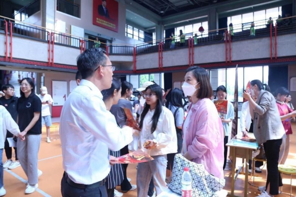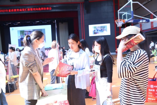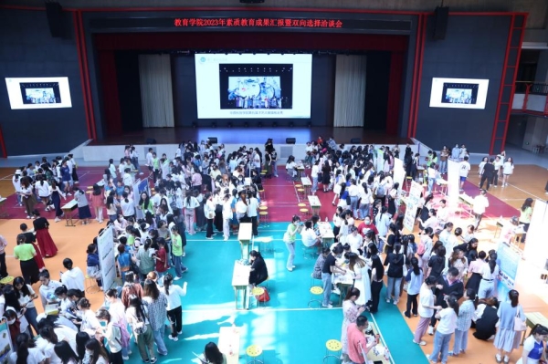5月24日,由教务处、招生就业处主办,教育学院承办的中原科技学院教育学院2023年素质教育成果汇报暨双向选择洽谈会在健行馆举行。中原科技学院党委书副书记、副校长杜建松,中原科技学院校长助理、教育学院院长冯蔚,中原科技学院教务处副处长李冰,郑州市二七区凯智思德幼儿园园长王丰允,教育学院副院长李向玲,教育学院院办主任韩冬及教育学院团委副书记曹啸天,37家教育教学实践基地的代表和1200余名学生参加了本次活动。活动为2023届、2024届毕业生就业和实习搭建了双向交流平台。