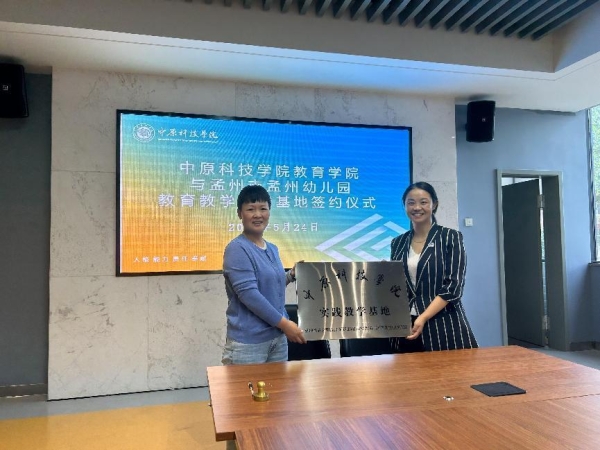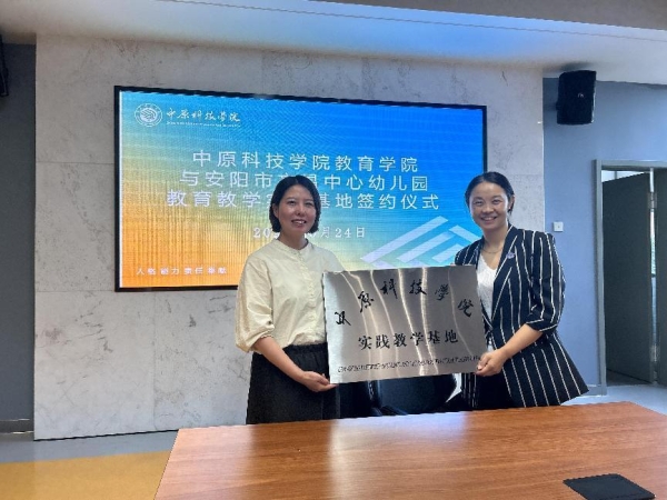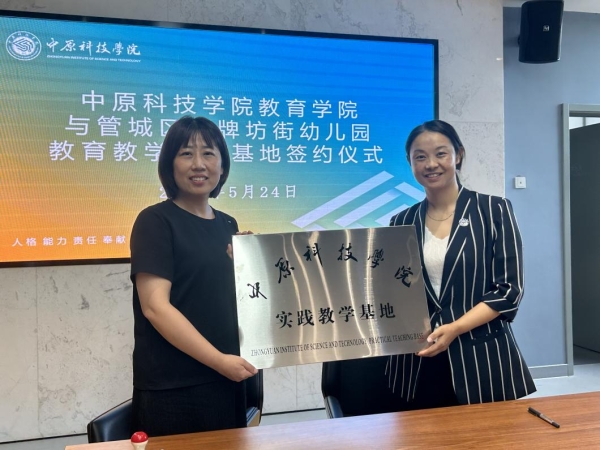 为加强高校与一线园所的联系,实现理论实践相结合的共同成长,打造学生优质就业实习基地,2023年5月24日下午,中原科技学院教育学院于健行馆会议室与郑州市管城回族区砖牌坊街幼儿园、郑州市二七区臻博兴华幼儿园、安阳市龙安区文昌中心幼儿园、孟州市孟州幼儿园举行教育教学实践基地签约。中原科技学院校长助理、教育学院院长冯蔚,教育学院副院长李向玲出席了活动。