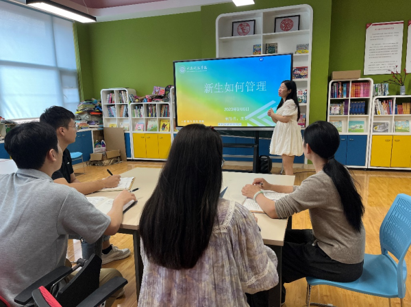 培训伊始,庞朵以“为新生扣好入学第一粒扣子”为主题进行分享。内容包括组建班委团队、新生由高中到大学过渡期应对技巧、大学生职业规划、宿舍文化建设、学生日常事务管理等多个方面,通过案例分析、数据分析等多种方式细致地讲解了学生工作中可能遇到的突发问题以及解决方案,为新生辅导员开展工作提供了宝贵的建议。随后,新生辅导员就目前工作所遇到的问题进行交流讨论。最后,路瑶函进行总结讲话。她表示,庞朵老师所培训内容覆盖范围广,案例代表性强,希望各位新生辅导员能够深入思考,认真总结,更好地开展新生工作。