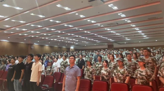 会议伊始,奏唱中华人民共和国国歌,全体师生行注目礼。随后,商立君、冯蔚通过视频方式为新同学送上新学期寄语。