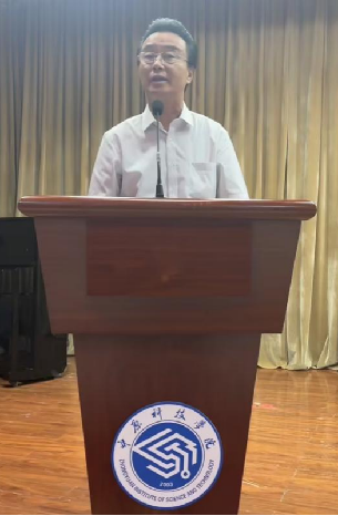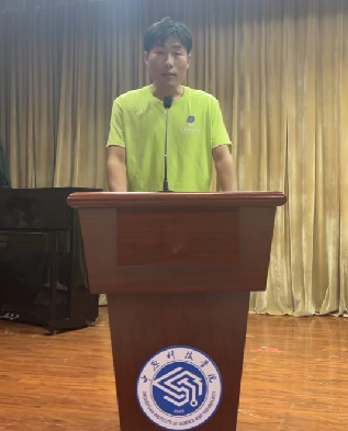教师代表曹啸天进行发言。他结合自身大学生活及工作经历,鼓励同学们在大学期间要用心感受美好校园时光,树立理想信念,勤奋学习,做一名有理想、有追求、有担当、有作为、有品质、有修养的大学生。