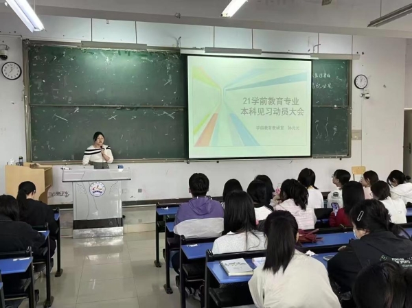 2024年4月16日上午,中原科技学院教育与艺术学部教育学院开展教育见习活动,教育与艺术学部教育学院学前教育专业教研室主任孙元元、学前教育专业专任教师王悦、孙方研、彭凡凡带队,2021级学前教育专业本科学生参加,共计185名。在动员大会上,孙主任向学生讲解了教育见习主要任务与内容、注意事项以及安全事宜。