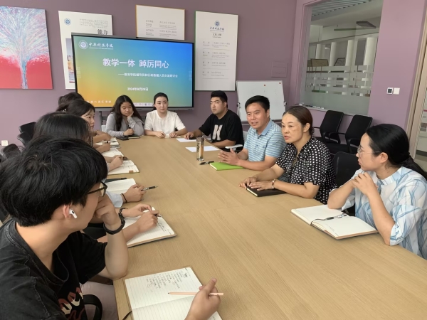 冯蔚院长指出,教书与育人必须是一体的,冯院长从辅导员在学生中的地位、学业导师与辅导员工作的融合、学院办公室成员分工与辅导员工作的相辅相成等方面强调了工作相互配合的重要性。李向玲副院长以教育育人一体化、教育学院专业介绍、辅导员老师对班风和学风的引领与影响三个方面为切入点,带领辅导员老师整体了解了各个专业的培养内容、要求、层次、特点、教学安排,提议辅导员和各专业负责人共同对学生进行专业指导。吴国良书记首先介绍了本学期新生、老生的分布情况,并对教学工作和学生工作方方面面的融合做了进一步的指导。