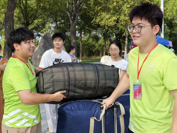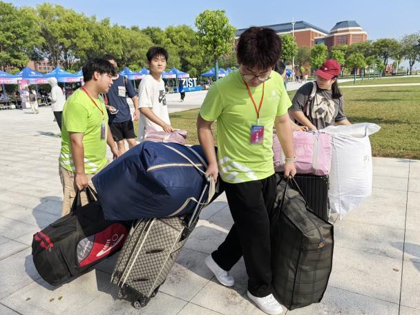 开学前已开启线上缴费选宿舍,为了方便新生快速找到宿舍并顺利入住,从进入校园至完成报到,我们的志愿者一对一、多对一全程陪伴,为新生搬运行李。