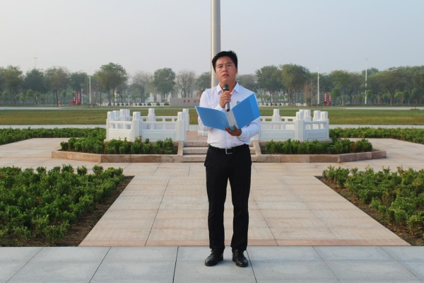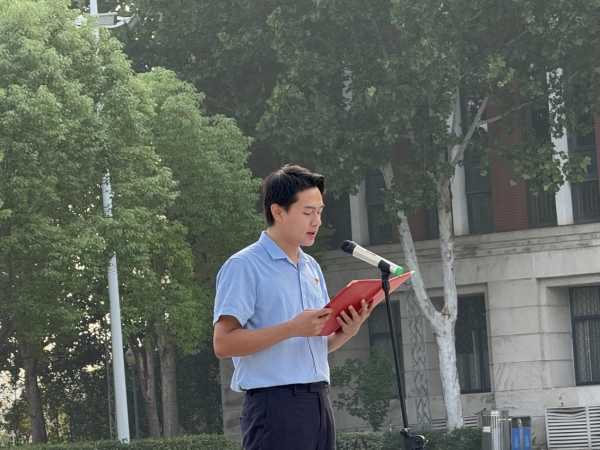 教育学院党总支副书记曹啸天在郑州校区仪式上讲话