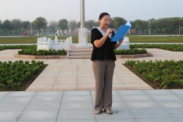 教育学院团总支书记魏蕾铮在许昌校区主持仪式
