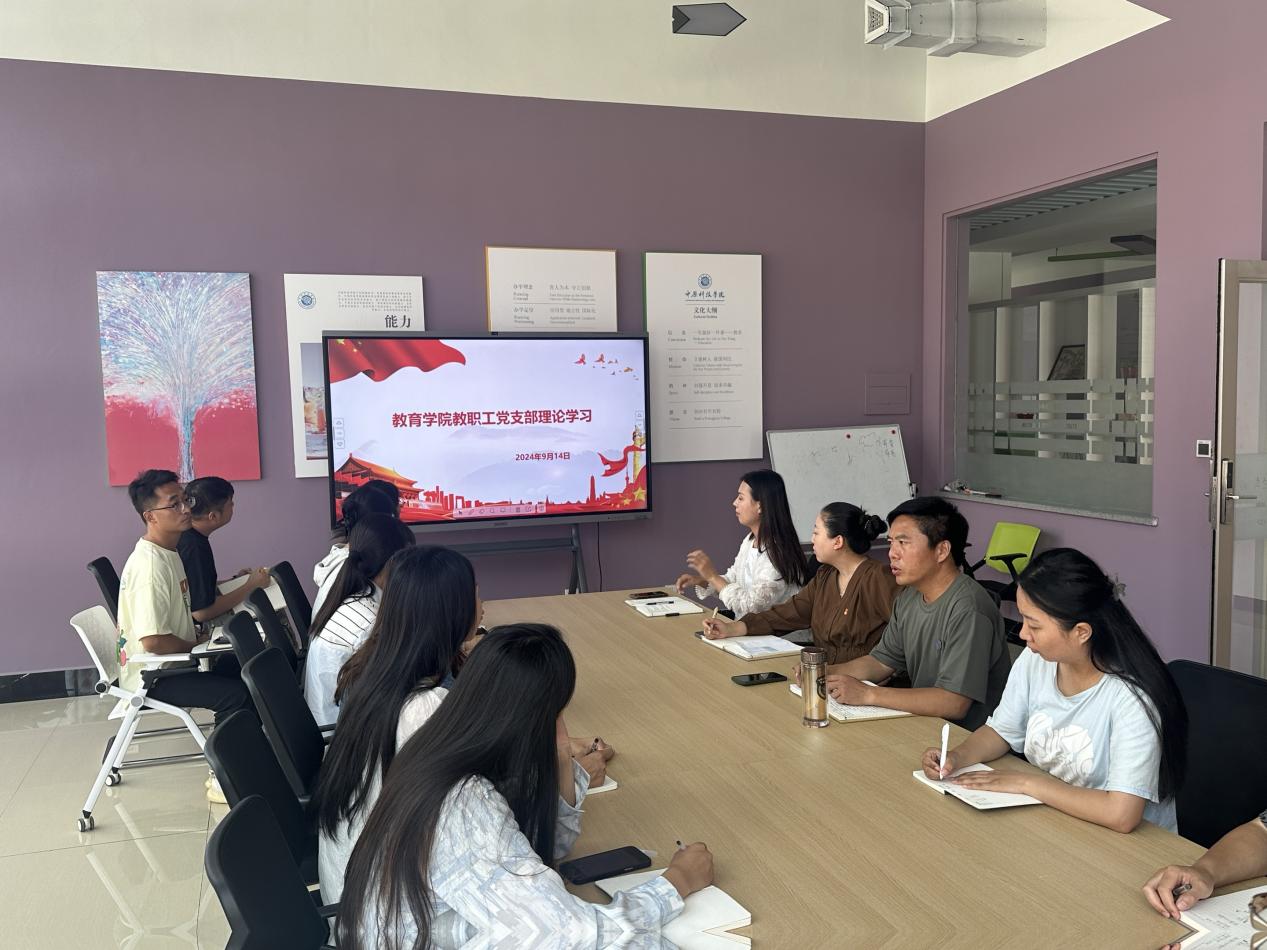 为进一步学习贯彻习近平总书记在全国教育大会上重要讲话精神,锚定新时代新征程建成教育强国的奋斗目标,根据校党委宣传部的工作部署和教育学院党总支的安排,2024年9月12日至14日,教育学院党总理论学习中心组以及各党支部,组织全院师生党员,通过线上线下相结合的形式,学习习近平在全国教育大会上强调:紧紧围绕立德树人根本任务,朝着建成教育强国战略目标扎实迈进、《求是》杂志发表习近平总书记重要文章《培养德智体美劳全面发展的社会主义建设者和接班人》。