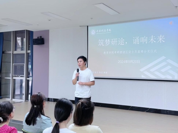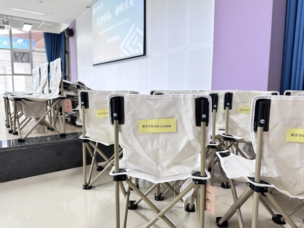 追风赶月莫停留,平芜尽处是春山。灼灼考研梦,情暖学子心,为鼓舞教育学院学子士气,以帮助其缓解学习压力,坚定研途信心,2024年9月20日中午,教育学院于原初书院105开展了以“筑梦研途,诵响未来”为主题的考研朗读区设立及座椅分发仪式。本次活动由教育学院院长冯蔚、党总支书记吴国良、办公室主任王彦杰出席,教育学院毕业班辅导员代表高冰倩、50余名考研学生代表参加。
