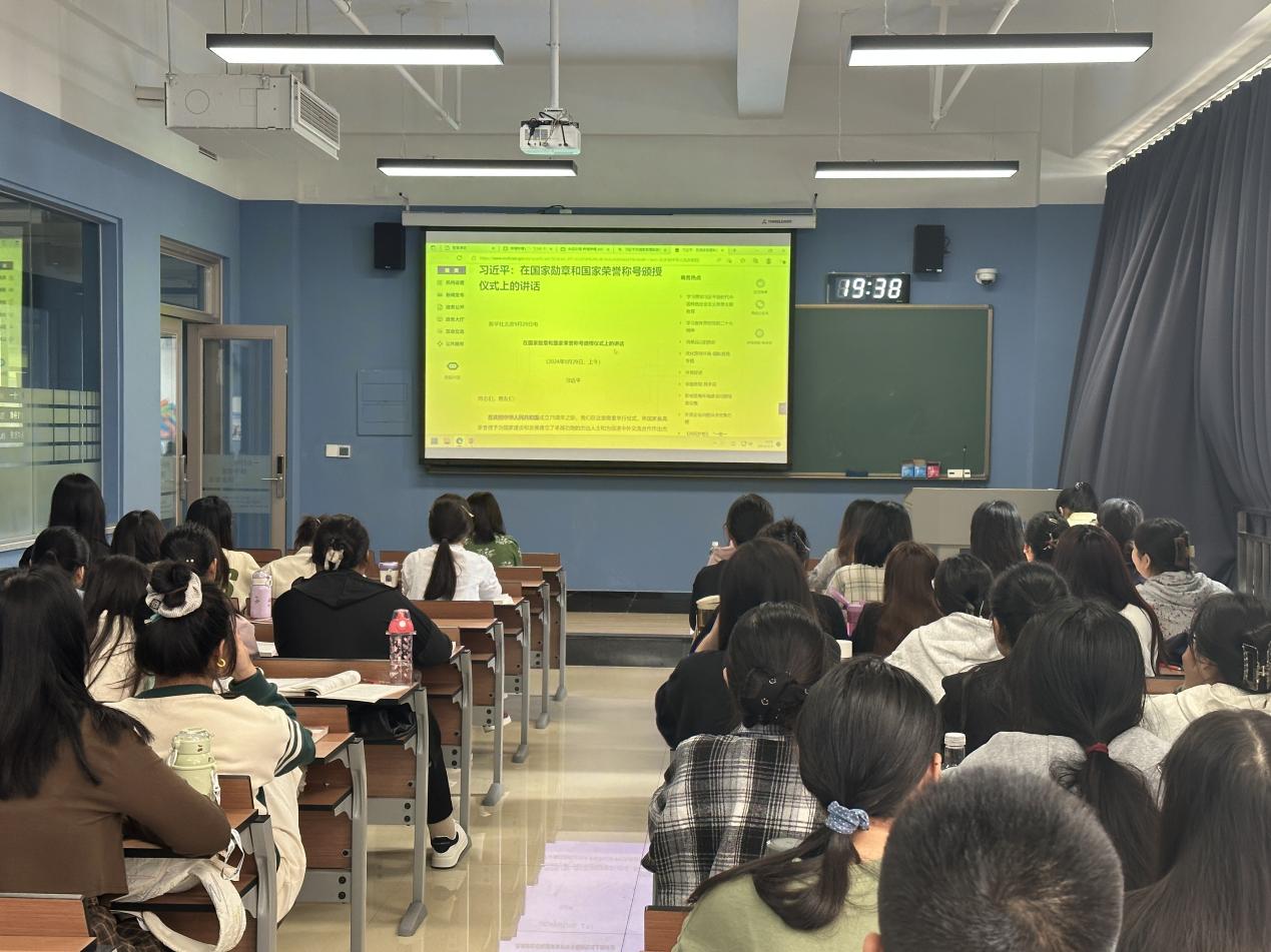 理论学习期间,为弘扬英雄模范精神,激发学生的爱国热情和奋斗精神,在教育学院党总支的统筹部署下,由各辅导员具体实施,各年级专业组织学生干部深入学习习近平总书记在国家勋章和国家荣誉称号颁授仪式上的讲话。