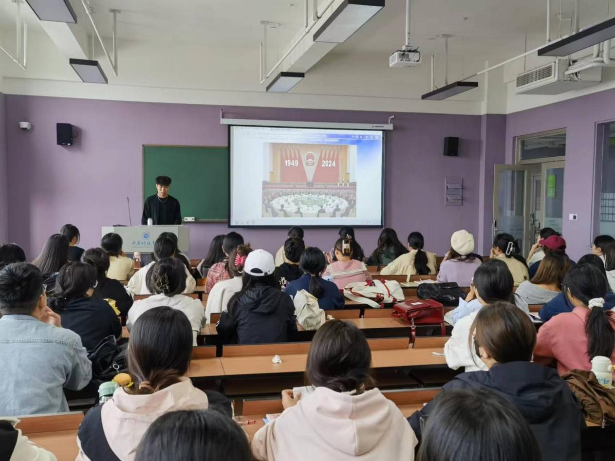 在教育学院政工干部理论学习会议上,党总支书记吴国良带领教育学院全体辅导员共同学习本次理论精神,表示习近平总书记在庆祝中华人民共和国成立75周年致辞中的讲话,让人深感振奋和自豪。这次讲话不仅回顾了新中国成立以来的光辉历程和伟大成就,也展望了未来的发展方向和目标,使我们从中体会到了中国人民的团结奋斗精神、自强不息品质和不屈不挠的民族脊梁。