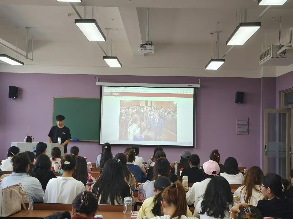 辅导员徐子盎老师在开展爱国主义理论学习主题班会