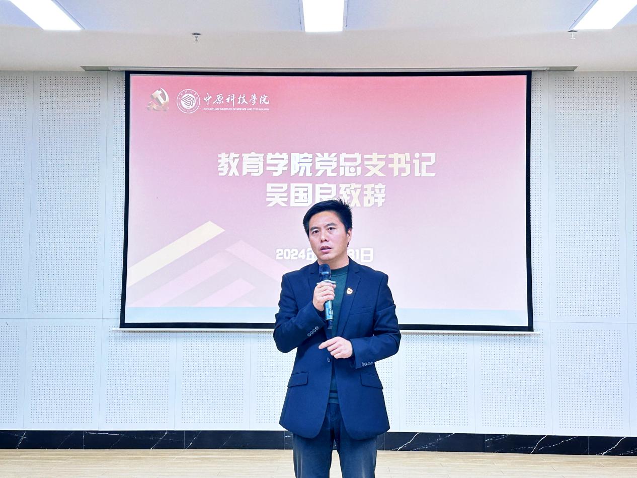 其作始也简,其将毕也必巨。活动伊始,教育学院党总支书记、副院长吴国良开场致辞,他表示“红色宣讲是我们传承党的光荣传统、弘扬社会主义核心价值观的重要途径。今天,我们在这里共同回顾党的历史,感悟红色精神,这对于每位党员同志来说,都是一次心灵的洗礼和精神的升华。”接着吴国良书记对学生党员们提出了新的期许,希望党员同志能将今天所学所感内化于心、外化于行,将红色基因融入自身血脉,让红色精神成为前进的动力。作为新时代的青年,要自觉肩负起历史赋予的责任和使命,用党的奋斗历程和伟大成就鼓舞斗志、指引方向,用党的光荣传统和优良作风坚定信念、凝聚力量,用党的历史经验和实践创造启迪智慧、砥砺品格,继往开来,开拓前进,为实现中华民族伟大复兴的中国梦贡献青春力量。