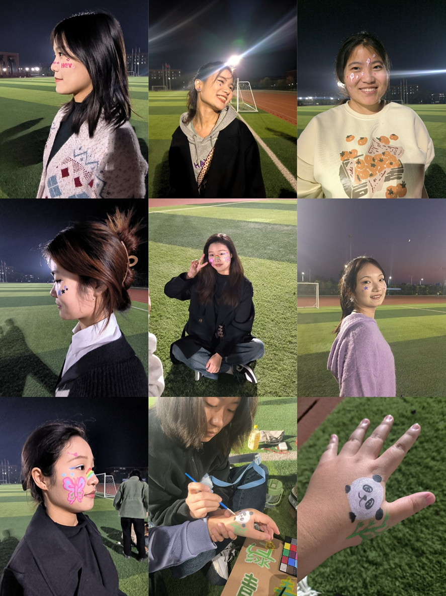 为践行教育学院青春、希望、健康、生态的绿色主题文化,增进2022级学前教育专业同学之间的相互了解和友谊,提升专业凝聚力和团队合作精神。2024年11月5日下午4:00,2022级学前教育专业全体同学在操场举办了一场别开生面的“绿色绘梦 青春添彩”面部彩绘专业团建活动。