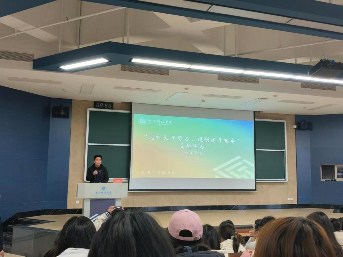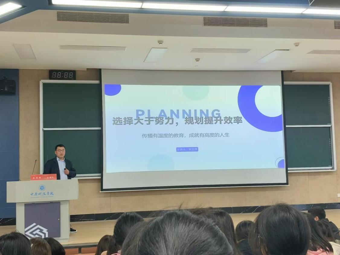 规划绘未来蓝图,宋志伟教授讲授了规划在提升效率方面的重要作用。他提到,一个明确且可行的规划可以帮助同学们更加高效地利用时间,减少无效努力,从而在激烈的竞争中脱颖而出。同时,他从自我教育、自我管理、自我发展三方面展开,分享了一系列实用的提升自我的方法与技巧。