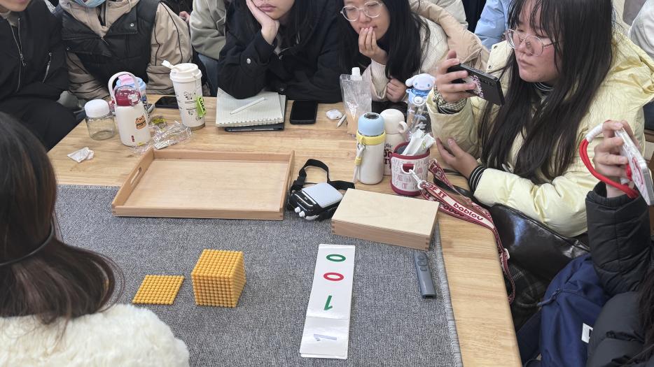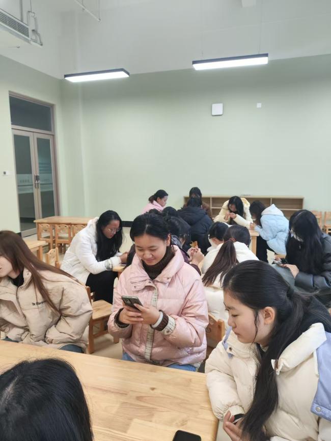 为提高师范生专业能力,2024级学前教育(专升本)11班近日在原道楼M119举办特色早读活动。本次活动由组织委员任亚欣主持,学前11班全体同学共同参与。特色课程强调动手实践,为学生提供了丰富多样的教具和有利的学习环境。通过“在做中学、在做中玩”的方式,学生们不仅激发了学习兴趣,还培养了创新思维和解决问题的能力。此次特色早读活动充分展现了师者的风采,学生们相互借鉴,取长补短,全面提升了创新精神和实践能力,熟练掌握了教具的使用方法,为未来在教育教学中扎实的知识功底和过硬的教学能力打下了坚实基础。