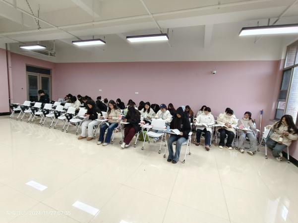 2023级学前教育3班“同学们认真勾勒线条,铺陈晕染”