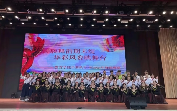 随着一首首欢快的音乐响起两校区的汇报演出拉开帷幕,许昌校区进行的是声乐器乐汇报,郑州校区进行的是民族舞蹈专场汇报。在许昌校区汇报中,首先上场的是2022级学前教育专业本科的同学们,他们带来的是奥尔夫器乐合奏《卡门序曲》,这首乐曲以其独特的节奏和感染力一下子让现场的观众置身于活跃的氛围当中;2023级本专科学生带来的钢琴独奏、歌伴舞《绒花》、舞蹈《广寒宫》等,同学们的舞蹈动作整齐划一、姿态优美,演唱、演奏如行云流水般一气呵成;刘玮凝和张琳老师带来的钢琴四手联弹《春节序曲》,李铭老师指挥的合唱曲目《向云端》《歌唱祖国》等。在郑州校区民族舞蹈汇报中,在刘盼老师的指导下,2023级早期教育专业的学生们穿着各具特色的民族服饰,在舞台上翩翩起舞绽放光芒。整场活动洋溢着青春气息,充分展示了我院学生奋发向上的精神面貌和扎实的专业技能,彰显了教育学院理论与专业技能并重,“学生中心、产出导向、以展促学、持续改进”的教育理念。教育学院开发的专门适用于师范专业学生学习的声乐与视唱、乐理与钢琴、幼儿歌曲弹唱、幼儿舞蹈创编等课程,通过汇报很好地实现了相关课程的联动,可以从不同角度提升学生唱念做打的音乐基本素养及创新能力,深入挖掘技能课程中的思政元素,将学生培养成有理想有信念的人。