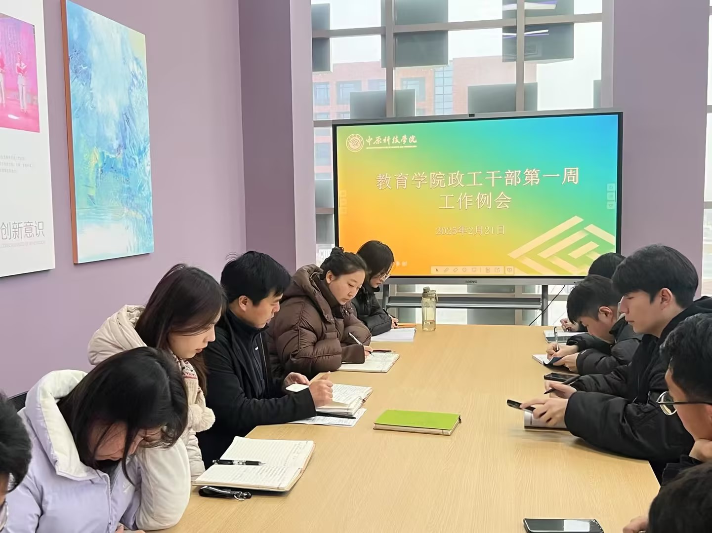 新学期伊始,为确保学生工作的顺利开展,提升辅导员工作效率和质量,推动学生工作高质量发展。2月21日,教育学院在原初楼201会议室召开了新学期辅导员工作第一周例会。会议由教育学院党总支书记吴国良主持,教育学院团委书记魏蕾铮、教育学院组织员张长豪以及全体辅导员参加了此次会议。