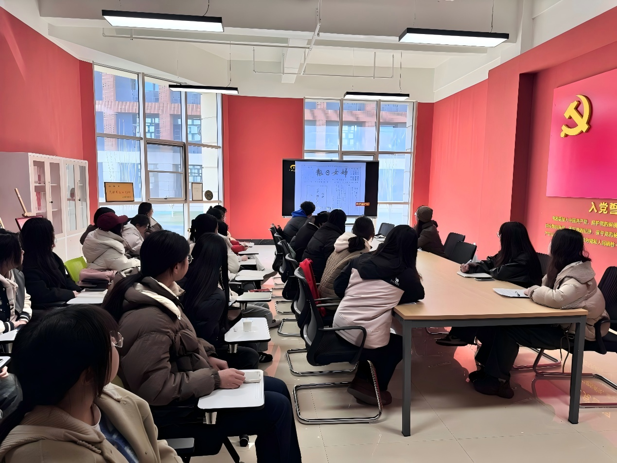 活动伊始,组织员张长豪带领全体党务助理进行理论学习。她从先辈对中国革命事业做出的努力入手,谈起了邓颖超同志波澜壮阔的一生:“邓颖超同志积极投身爱国运动,为争取民族独立和人民解放而英勇斗争;为妇女解放事业、国家外交事业等做出了卓越贡献。”邓颖超同志对国家和人民的无限忠诚,以及为理想信念不懈奋斗的高尚品质,深深鼓舞了在场同学们学习先进事迹,激发爱国情怀。