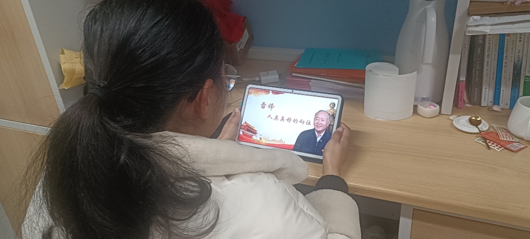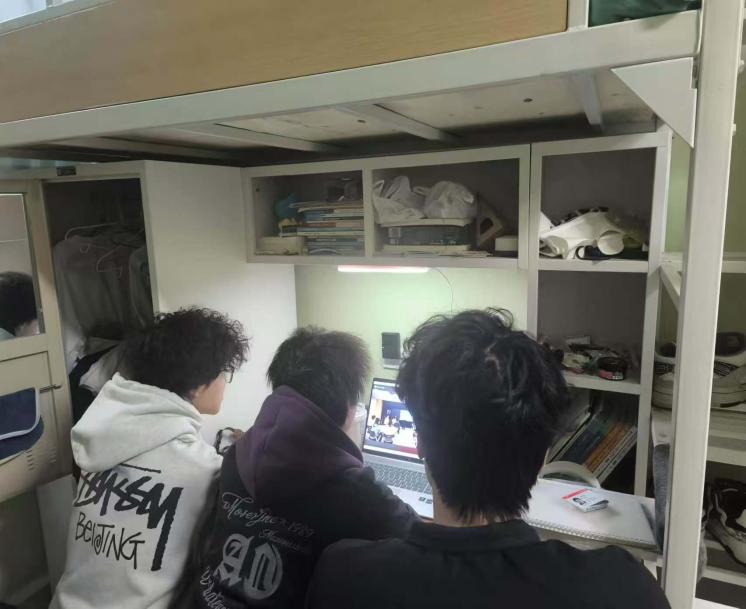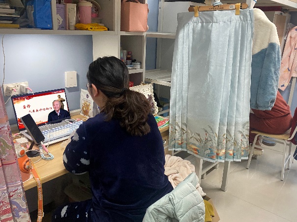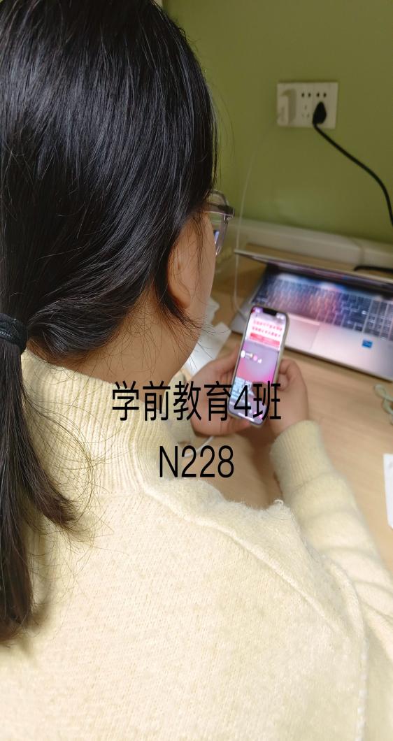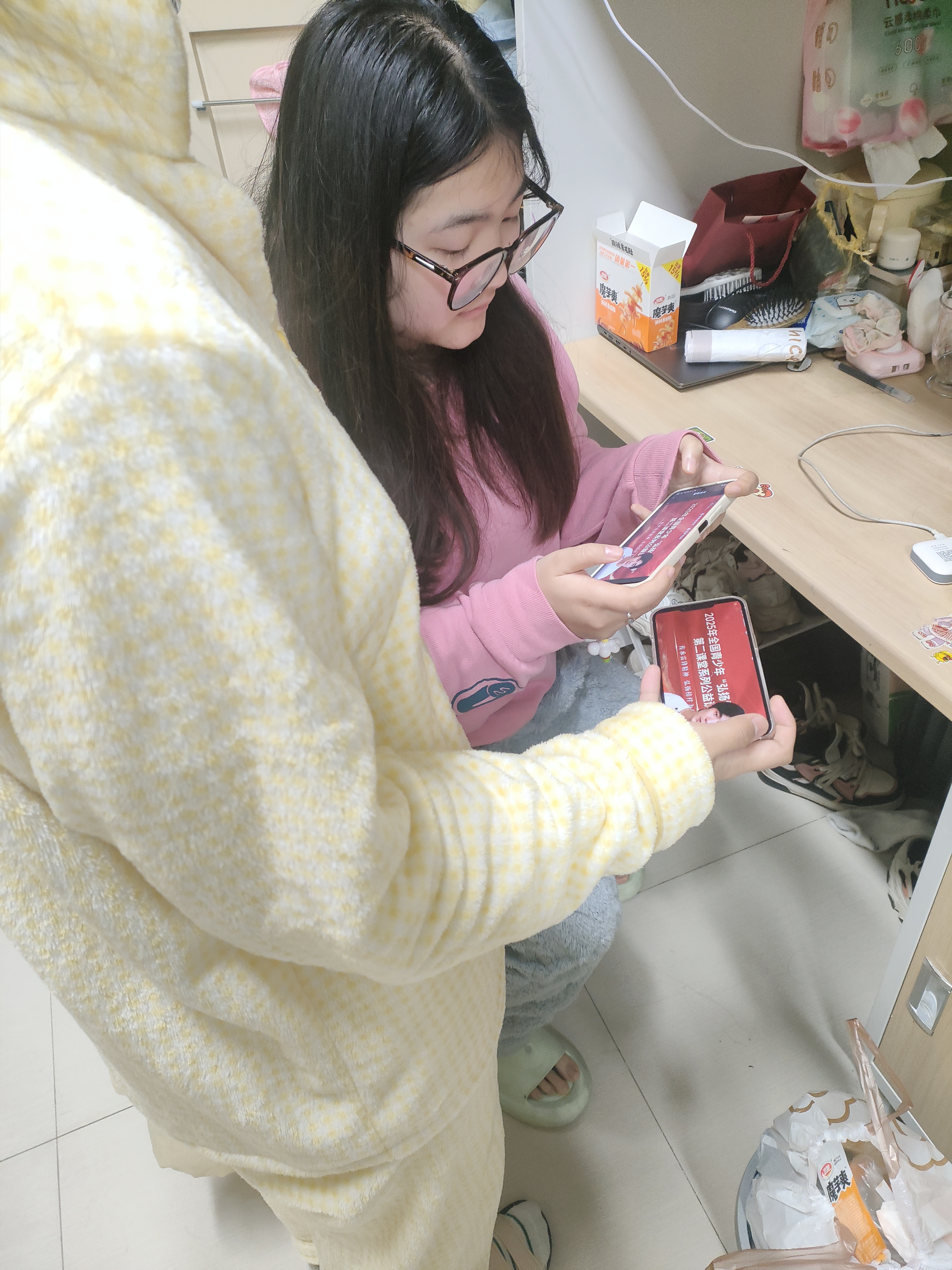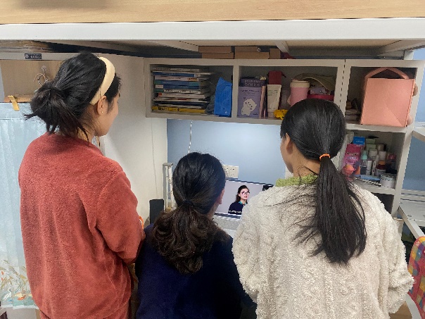 2023级学前教育(专)1班在原善楼宿舍观看学习