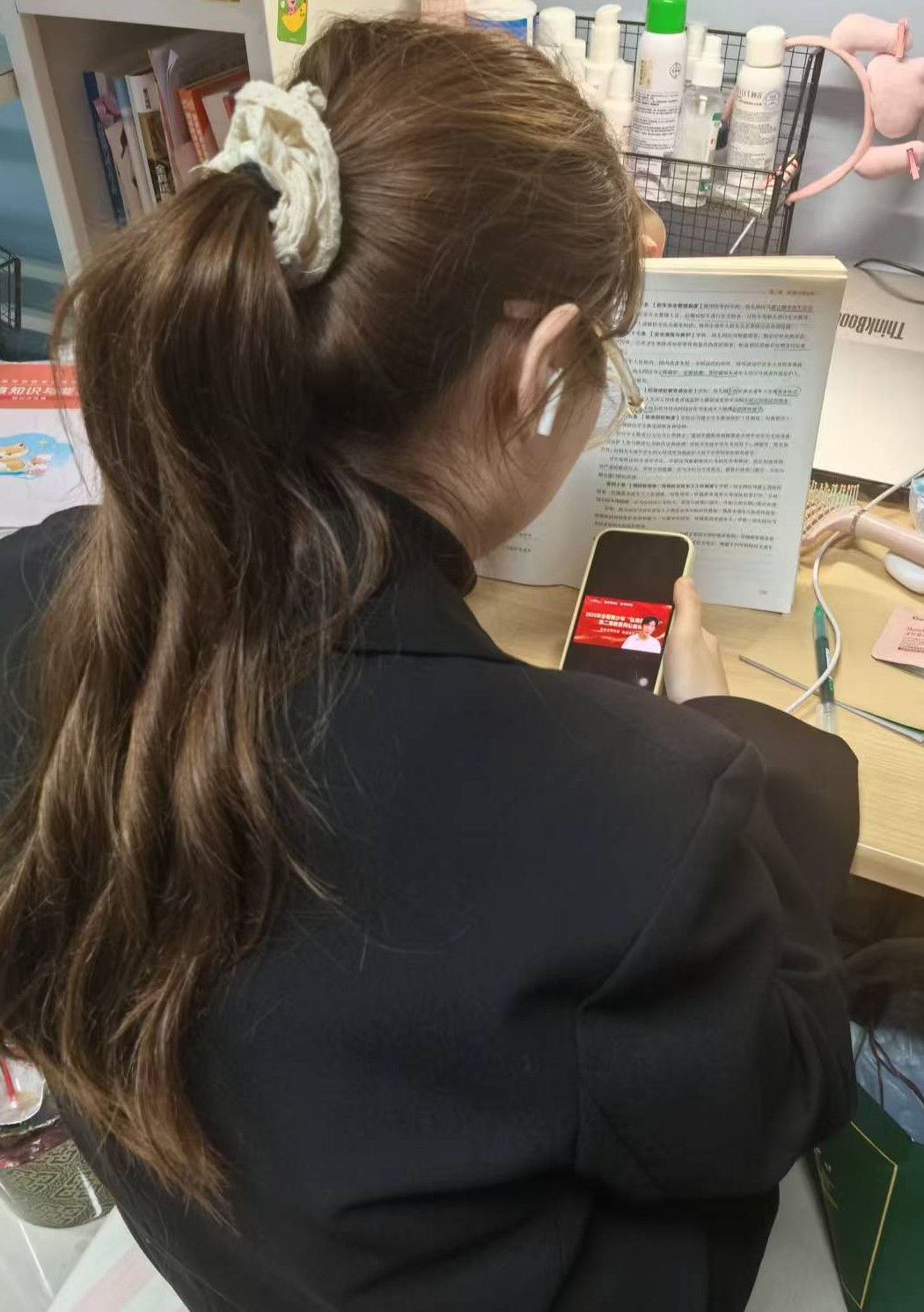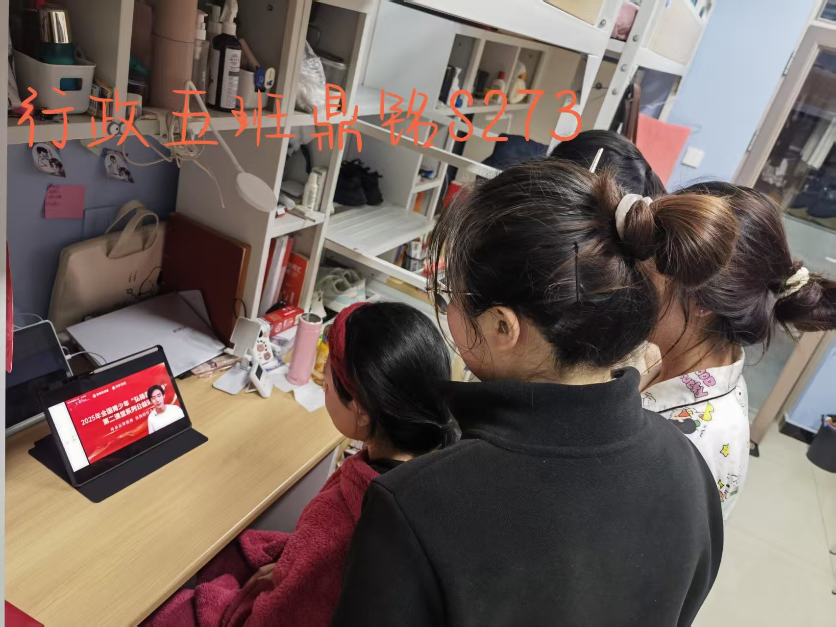 2024级小学教育(专升本)6班在原善楼宿舍观看学习
