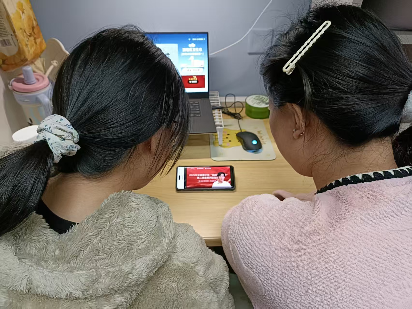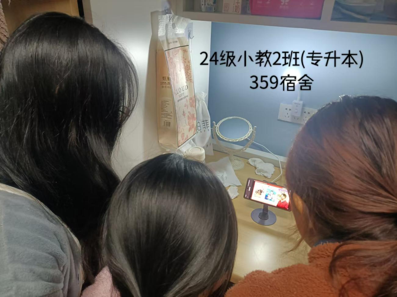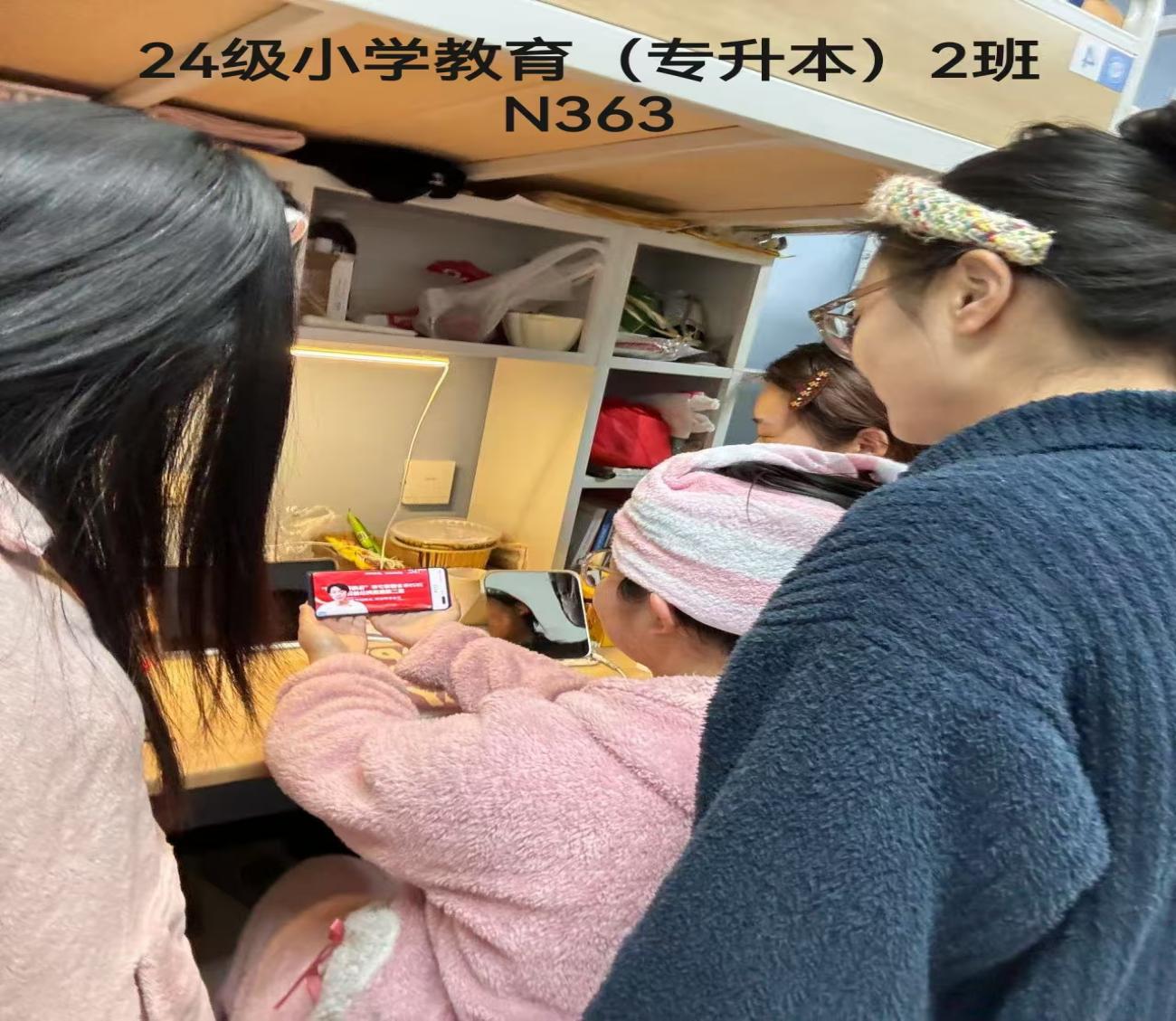 2024级小学教育(专升本)2班学生在宿舍观看学习