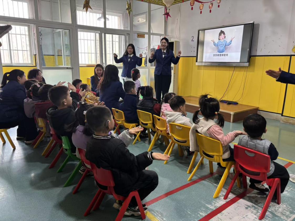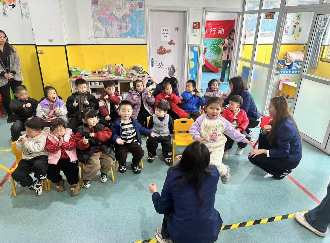 活动当天,志愿者们早早到达康复中心,通过简单易懂的手势和温暖的笑容引导孩子们参与游戏互动,让每个孩子都沉浸在欢乐中。志愿者们借助PPT讲解雷锋精神内涵,并通过互动游戏让孩子们感受乐趣。在“灵动指尖乐”环节中,志愿者教孩子们通过手指动作感受音乐律动,随后共同制作纸折雷锋帽体验手工乐趣。一位志愿者感慨道:“孩子们虽然听力受限,但对世界充满好奇与热爱,我们的陪伴希望能为他们打开更多感知世界的窗口。”