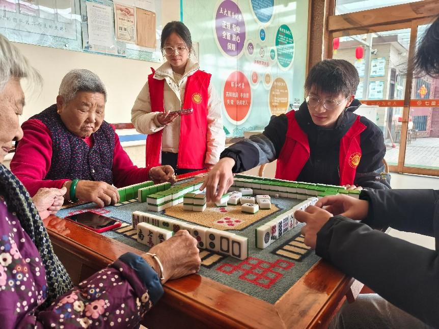 志愿者陪同老人娱乐
