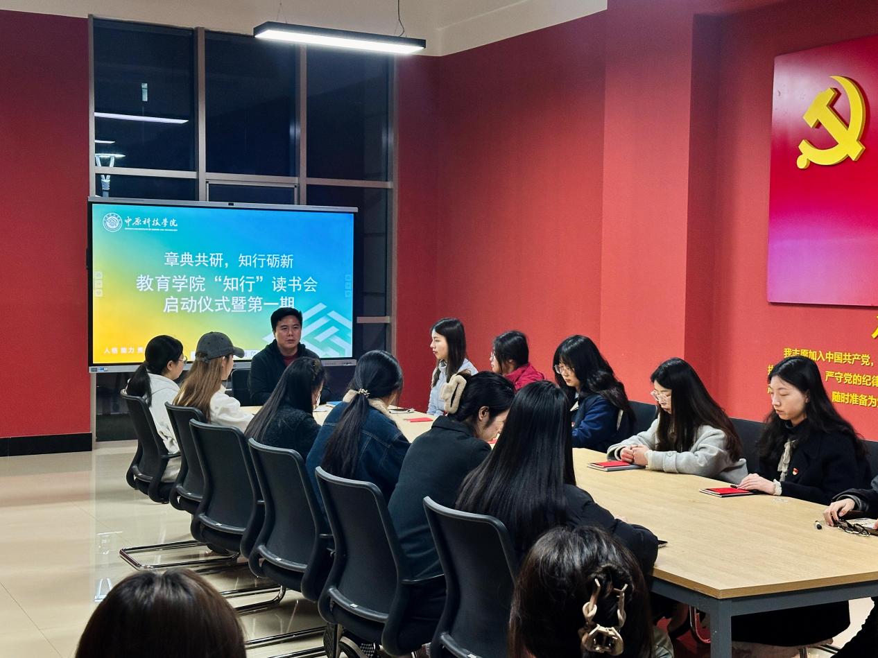 学深悟透担使命,踔厉奋进新征程。“知行”读书会是教育学院党员师生开展学习贯彻习近平新时代中国特色社会主义思想主题教育的生动实践。未来,教育学院将持续积极响应党中央号召,深入学习宣传贯彻习近平总书记重要讲话精神,推进读书会常态化长效化开展,读原著、学原文、悟原理,引导学生党员明使命、辨方向、知前路,引领青年学生立德修身、传承中华优秀传统文化,助力推进学校“书香校园”建设。