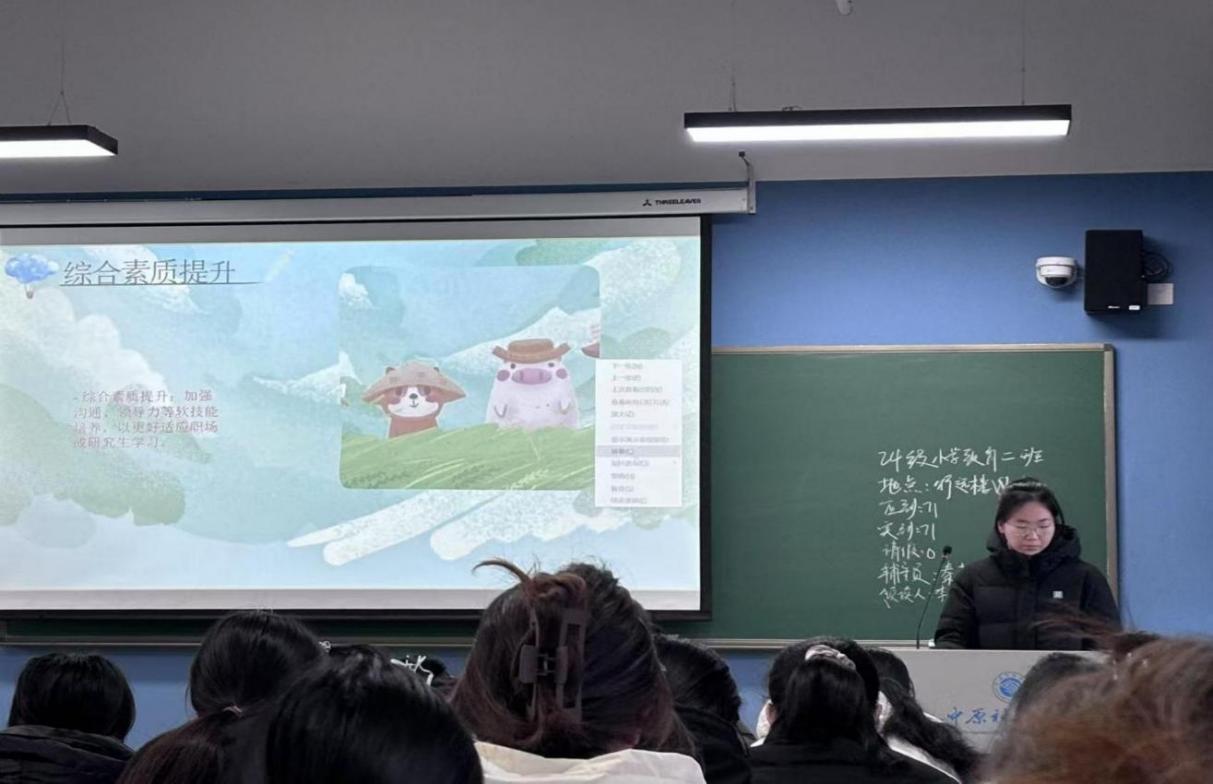 3月14日,22级心理学1班在原道楼M405教室开展教资面试技巧试讲活动。活动由班长申昌宝主持,邀请已考取教师资格证的马嘉悦同学主讲。马嘉悦结合自身经验,讲解了面试礼仪、试讲技巧及结构化面试策略,强调仪容仪表、自信表达的重要性,并分享克服紧张情绪的方法。互动环节中,同学们积极提问,现场气氛热烈。活动总结时,申昌宝表示,此次活动帮助同学们熟悉面试流程、增强信心,未来班级将继续探索多样化的学习活动,提升专业视野和班级凝聚力。