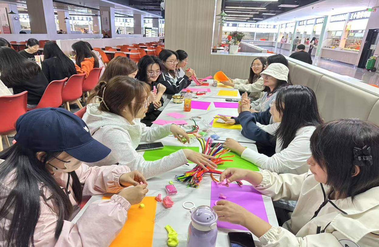扭扭棒编织的挂件如星子垂落,超轻粘土捏塑的卡通形象承载童真,折纸组合作的立体花朵则隐喻"独枝非春,百花成锦"的团结之道。作品展示环节,有同学将橡皮泥雕塑命名为"压力的解构",笑言:"揉捏之间,烦恼已化为艺术。"班长总结:"手工是心灵的默剧,而协作是无声的告白。"活动以创意为媒介,让心理学子在创造中疗愈,在协作中读懂"共情"的深层密码。