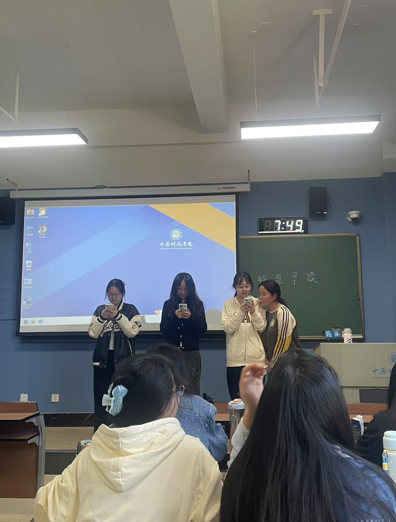 4月17日,23级小学教育2班在原道楼M405开展“身临其境,体验课堂”特色早读活动。活动打破传统朗读模式,同学们抽号进行“模拟课堂”,选取小学语文、数学、英语等课程,精心设计教学环节,模拟真实课堂场景。贺馨冉同学模拟小学班会现场,开展世界地球日主题班会;董亚蝶同学讲解小学数学题,语言通俗易懂。此次活动为学生提供了实践机会,将理论与实践紧密结合,提升教学技能,展现对小学教育的热爱与理解,为未来教师生涯奠定基础。