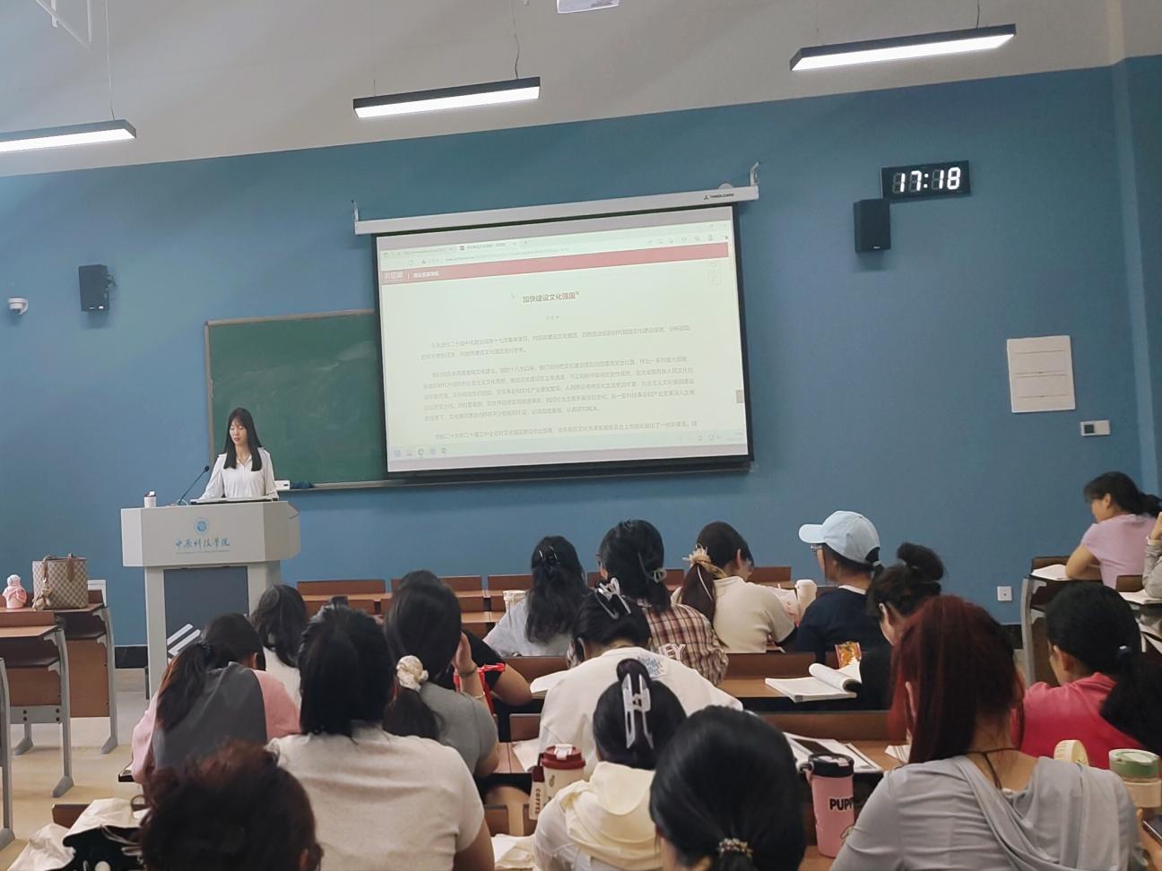 理论武装头脑,思想引领行动。在教育学院教职工政治学习例会上,校长助理、教育学院院长、教职工党支部书记冯蔚表示,要深入学习《加快建设文化强国》,充分领会其精神实质,将文化建设融入到教育教学的全过程,不断提升教育质量和文化内涵。她强调,作为教育工作者,我们肩负着培养社会主义建设者和接班人的重任,必须不断提高自身的政治素养和文化修养,以更好地引导学生树立正确的世界观、人生观和价值观。冯院长结合教育学院实际情况,提出了具体的学习计划和措施,鼓励教职工们要结合教育工作实际,注重融入中华优秀传统文化、革命文化和社会主义先进文化,培养学生的文化自信,为文化强国建设贡献教育力量。