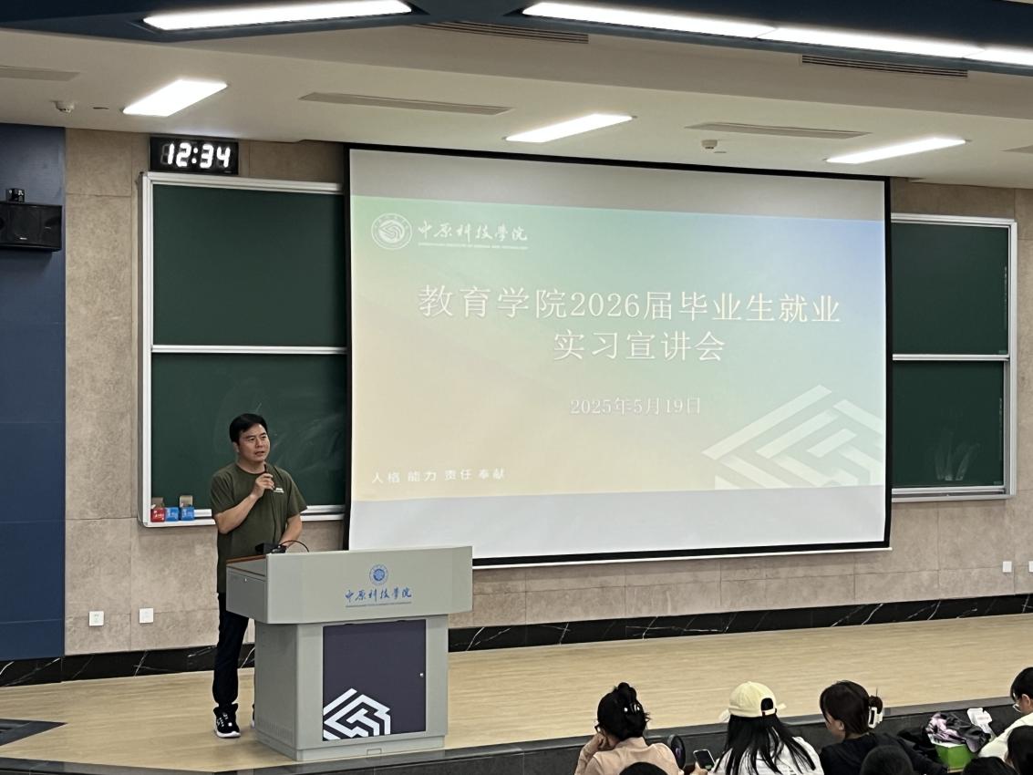 为助力2026届毕业生更好地规划职业发展,提升就业竞争力,教育学院于2025年5月19日隆重举办了一场就业实习线上线下结合宣讲会。本次宣讲会吸引了众多学生前来参加,现场气氛热烈,效果显著。