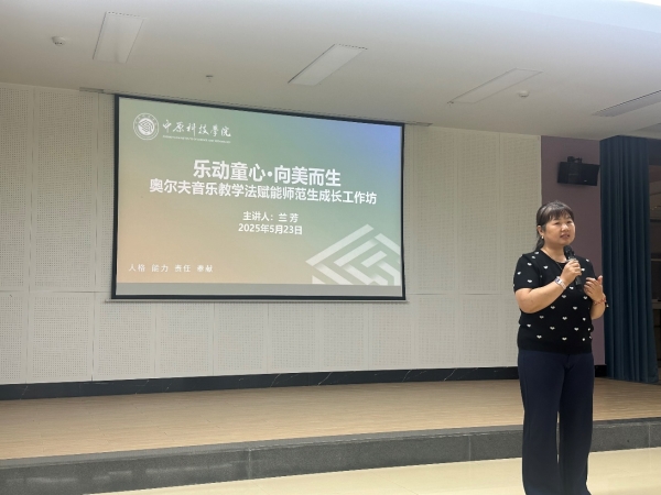 为进一步提升师范生的音乐素养和教学能力,推动素质教育、美育教学的深度融合与发展,2025年5月23日至24日,教育学院于原初书院报告厅成功举办奥尔夫音乐教学法赋能师范生成长工作坊。本次活动邀请到中国音乐家协会奥尔夫专业委员会会员兰芳教授为主讲嘉宾,中原科技学院校长助理兼教育与艺术学部副部长、教育学院院长冯蔚,教育学院音乐教研室主任许敏,许昌市政府机关幼儿园、第二实验幼儿园、文化街幼儿园教师,教育学院音乐教研室全体专任教师及2024级学前教育专升本专业学生共计100余人。活动由许敏主持。