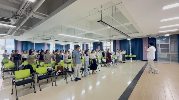 会议正式开始之前,心理学教研室樊钊源老师首先在会上带领全体教师进行了热身活动,活跃了现场气氛,为接下来的会议定下了轻松愉快的基调。会议伊始,赵双兰副院长介绍了新入职教师,新老师依次进行简单的发言,并表示尽快适应新角色。冯蔚院长宣读了学院人事调整变动情况,对新提拔的干部表示祝贺;随后,教育学院教学秘书陈璐璐对学期初教学的相关工作进行了汇报,明确了时间节点,保障做好开学前的各项教学工作;同时,赵双兰副院长对本学期工作思路及下一步工作进行了简单说明。会议最后,冯蔚院长对全面总结了暑期工作取得的进展与成效,在赵双兰副院长总结的基础上对学院内岗位分工进行了详细的说明与安排,并对新学期重点工作进行了部署,强调了师德师风的重要性,紧紧围绕立德树人的根本任务,聚焦教育教学质量提升、教师科研成果转化,扎实做好迎评促建、专业建设、学生管理等各项工作,号召全体教职工凝心聚力,以饱满的热情和务实的作风投入到新学期的各项工作之中。