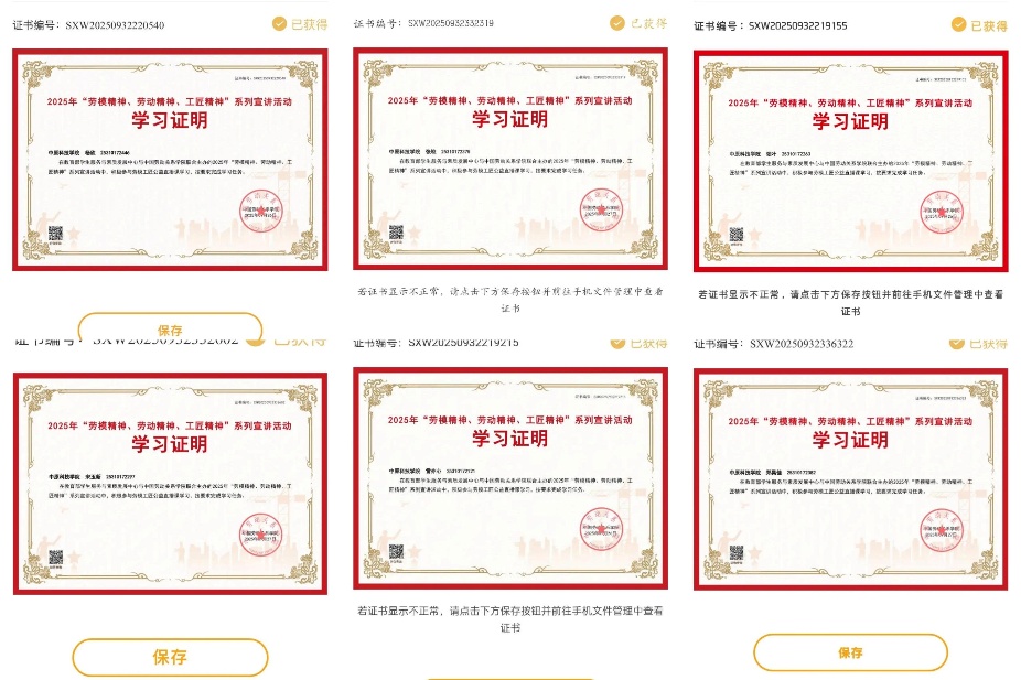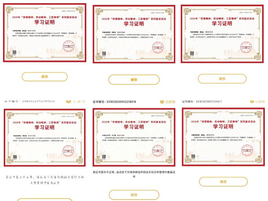 直播结束后,学生们通过“到梦空间”公众号参与答题测评,众多同学以60分以上的成绩获得活动“学习证明”。此次活动的开展,不仅让同学们深刻理解了“三大精神”的丰富内涵,更引导大家树立了正确的劳动观念与择业志向。教育学院学子纷纷表示,将以张金全劳模为榜样,把奋斗精神融入学习生活,努力成长为新时代高素质劳动者,到祖国需要的地方建功立业。