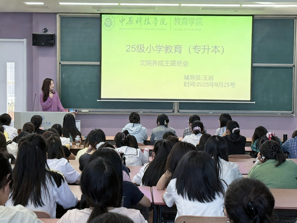 在25级小学教育(专升本)1-4班的班会上,辅导员毛煜宁创新融入了“文明素养提升”专题。她指出,作为未来的人民教师,文明素养不仅关乎个人形象,更关系到教书育人的职业使命。通过“文明礼仪示范”“情景模拟演练”等互动环节,学生们在实践体验中深化了对教师职业礼仪的理解,增强了职业责任感。