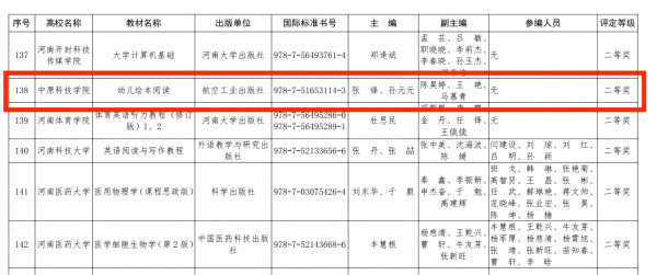 近日,河南省教育厅办公室印发《关于公布河南省教材等级评定结果的通知》(教办思政〔2025〕259号),我校推荐申报的《幼儿绘本阅读》荣获河南省教材等级评定二等奖。